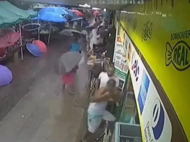 Imagens de câmeras de segurança registraram o momento exato do fenômeno. No vídeo, é possível ver pessoas caminhando sob chuva moderada quando a luz atinge a via, acompanhada de um barulho característico de trovão ou descarga elétrica próxima.